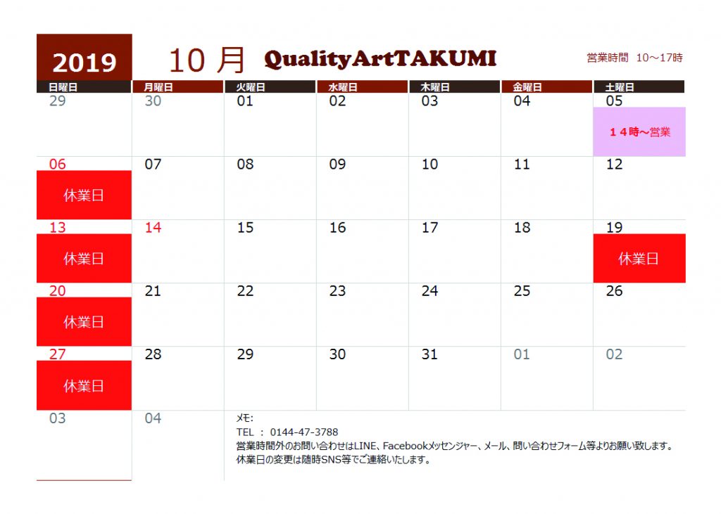 令和元年5月より不定休(ほぼ日曜)とさせていただきます。