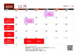 営業カレンダー202512
